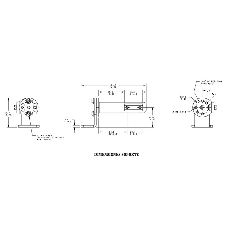 MODELO: EZLSA-MBK-11 Soporte en acero, chapado en zinc negro rotación 360° en incrementos de 23° calibre 8, incluye dos soportes con agujeros de montaje ranurados espaciados 20 mm en el centro.
